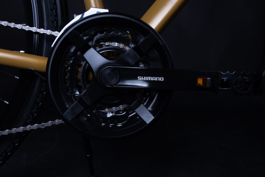 Tylna przerzutka Shimano Alivio zapewnia szybką i precyzyjną zmianę biegów, dzięki czemu jazda jest przyjemna zarówno w mieście, jak i na bardziej wymagających trasach.
