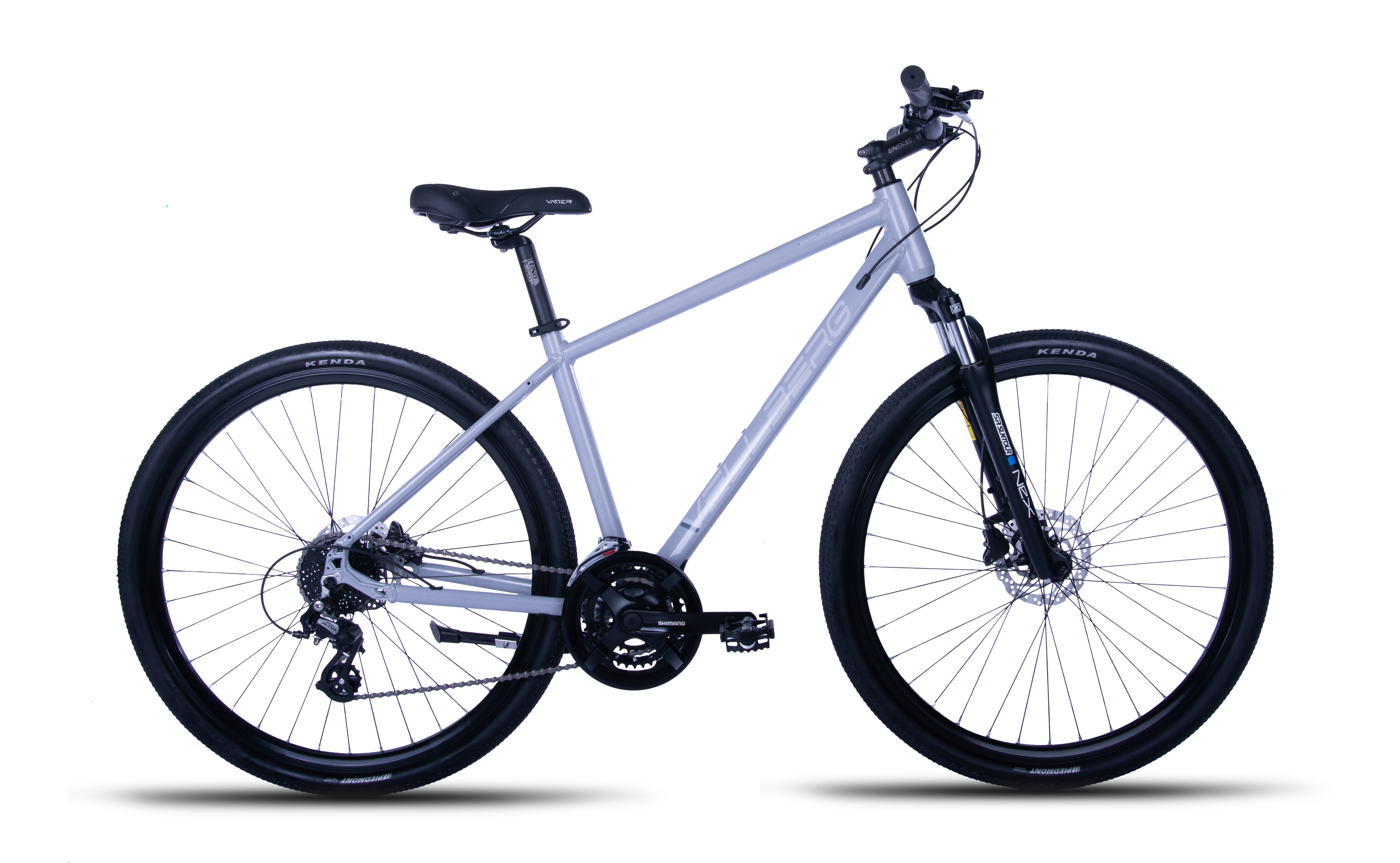 Vellberg EXPLORER 2.0 to rower crossowy dla bardziej wymagających użytkowników. Wyposażyliśmy go w hamulce hydrauliczne.Zastosowaliśmy amortyzator przedni Suntour Nex z regulacją naprężenia sprężyny. Koła na obręczach stożkowych w tym tylne koło wyposażyliśmy w bębenek który obsługuje kasetę 8 rzędową. Do dyspozycji mamy napęd Shimano 3 x 8. Przerzutka tylna z grupy Alivio oraz przednia Altus. Serce roweru to aluminiowa rama z wewnętrznym prowadzenie linek. Rama posiada mocowanie pod bagażnik oraz błotniki.